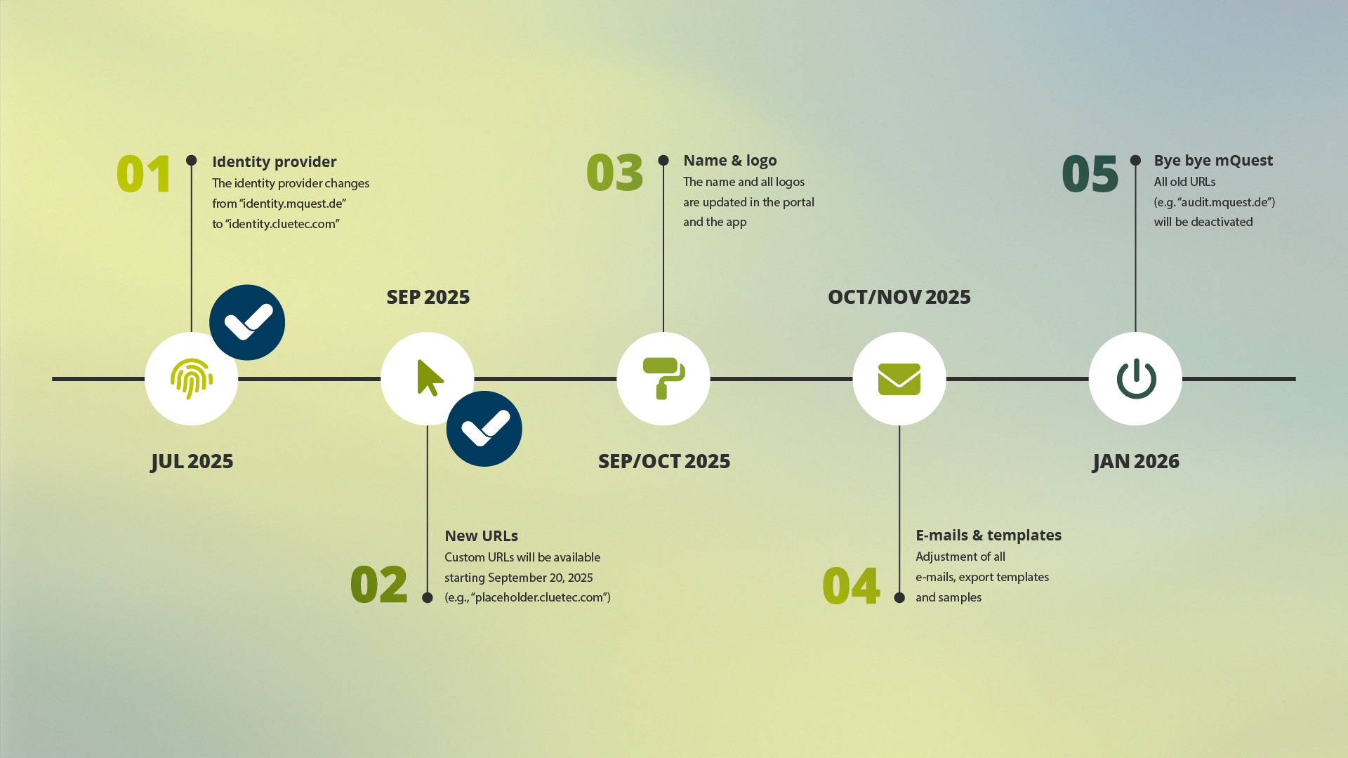 July 2025: The identity provider changes from “identity.mquest.de” to “identity.cluetec.com”.
